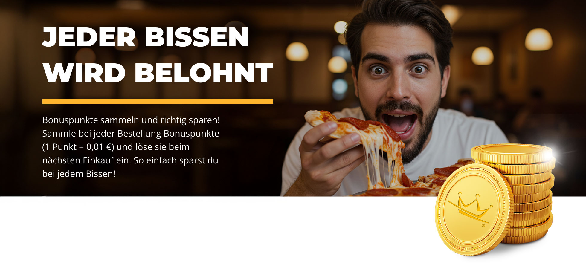 Ob Pizza, Burger oder Salat – mit jedem Produkt sammelst du wertvolle Bonis.