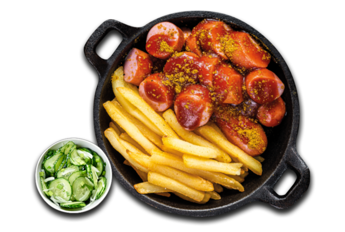 Riesen Currywurst mit Crunchy Fries